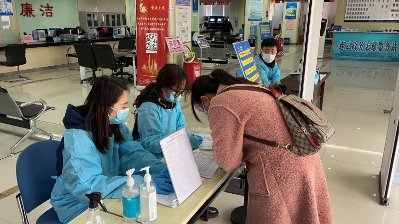 疫情发生后,连云港市政务服务中心和各县区政务服务中心第一时间发布政务服务不见面倡议书,提倡线上办理、“不见面”审批,公布疫情期间政务服务办理方法和联络方式,方便群众办事。政务服务中心安排人员24小时在班值守,对确需急办的事项组织人员帮办代办。政务服务中心各窗口采用“告知承诺制”方式办理了外资企业设立登记、企业变更登记等业务,不见面审批了办理禁区通行证等业务。为了解决封控小区居民购买生活物资问题,在“我的连云港”APP快速上线“疫情物资助手”功能,通过手机随时下单便可由超市打包配送到小区指定位置,有效解决了群众购物难的问题。