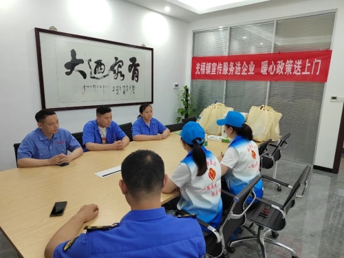为深入推进社保参保扩面提质行动,进一步强化辖区企业职工和的法治意识和参保意识,光福镇行政审批局联合镇综合行政执法局、组织人事和社会保障局集中开展企业大走访宣传。通过开展座谈会、摆摊等方式,为辖区内23家重点企业、3000余名参保职工讲解医保、工伤、生育等政策,介绍医保业务线上办理方式,帮助解决在网办过程中遇到的实际问题,最大程度为企业排忧解难。