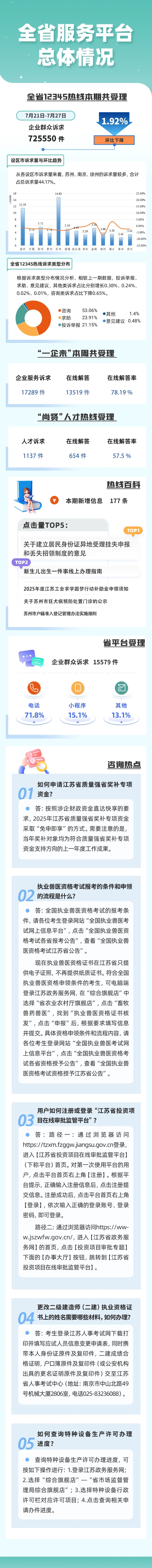 11月24日上午,省长刘小涛在省数据局专题调研政务服务工作。他强调,要深入学习贯彻党的二十届四中全会和习近平总书记对江苏工作重要讲话精神,践行以人民为中心的发展思想,坚持主动靠前、换位思考、精细服务,加强政务服务模式创新,推动服务内容扩面增效,让企业和群众更加有感有得。 <详情>