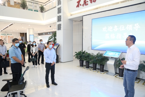 宜兴市行政审批局局长徐早其,副局长单涛与本次参会人员实地参观官林镇行政审批局,现场调研“好差评”工作开展情况。