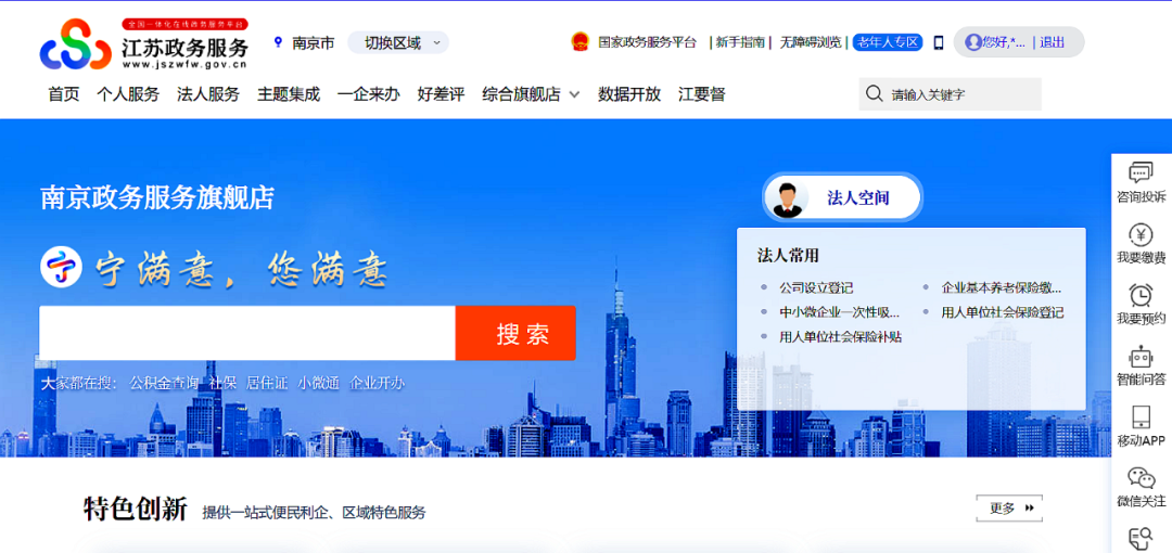 第一步:登录“江苏政务服务网”,点击“法人空间”板块。