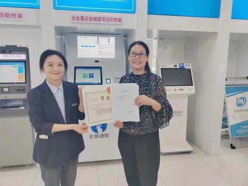近日,满女士在海头镇农村商业银行网点通过企业登记自助打照机顺利打印其申请的海洋食品公司营业执照。