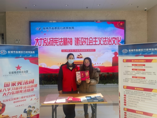 今年12月4日是第十个国家宪法日,12月1日至12月7日是第六个“宪法宣传周”,盐都区行政审批局紧紧围绕“大力弘扬宪法精神,建设社会主义法治文化”主题,在区政务服务中心开展“12·4国家宪法日”法治宣传活动,旨在进一步增强广大人民群众的法治观念和法律意识,推动普法工作不断发展,营造全民学法、知法、守法、用法的良好法治氛围。