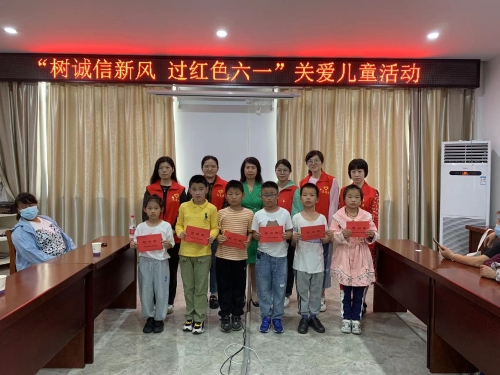 六一前夕,丹阳市行政审批局部分党员志愿者与结对帮扶村—珥陵镇新庄村联合开展“树诚信新风 过红色六一”关爱结对贫困儿童活动。