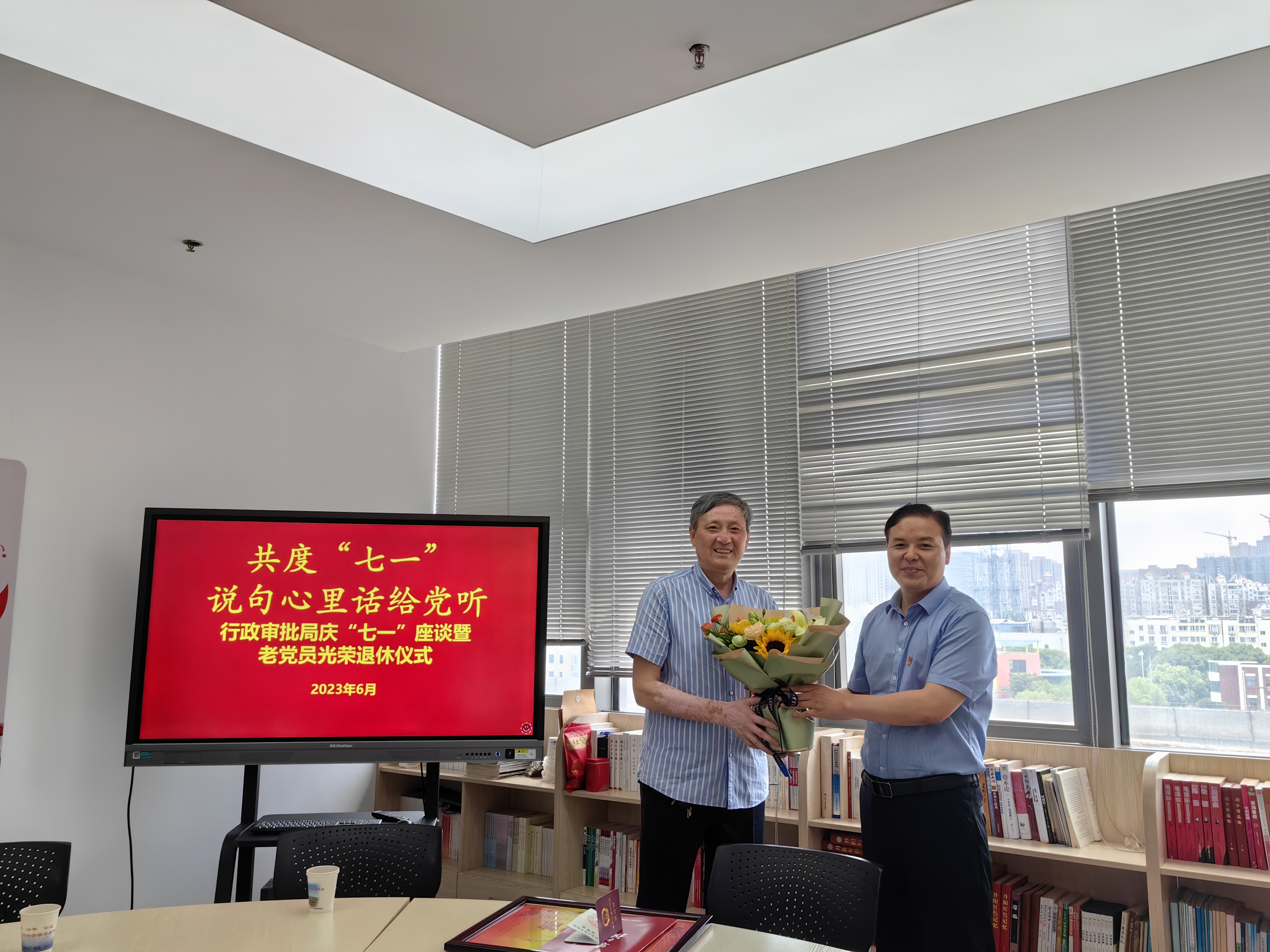 为庆祝中国共产党成立102周年,增强党员与党组织之间的血肉联系,6月28日上午,丹阳市行政审批局举办庆“七一”座谈暨老党员光荣退休仪式。