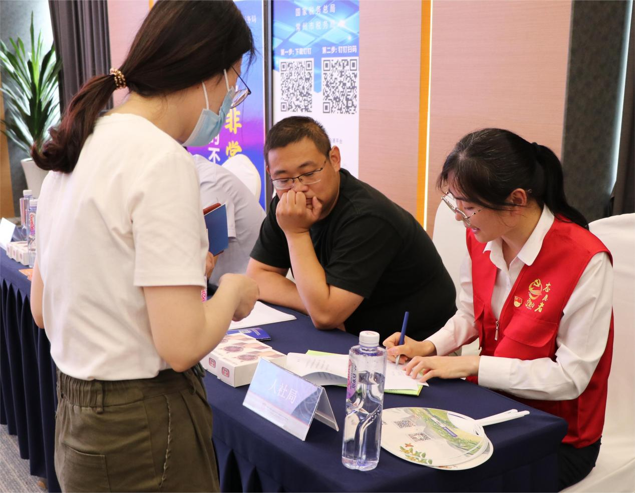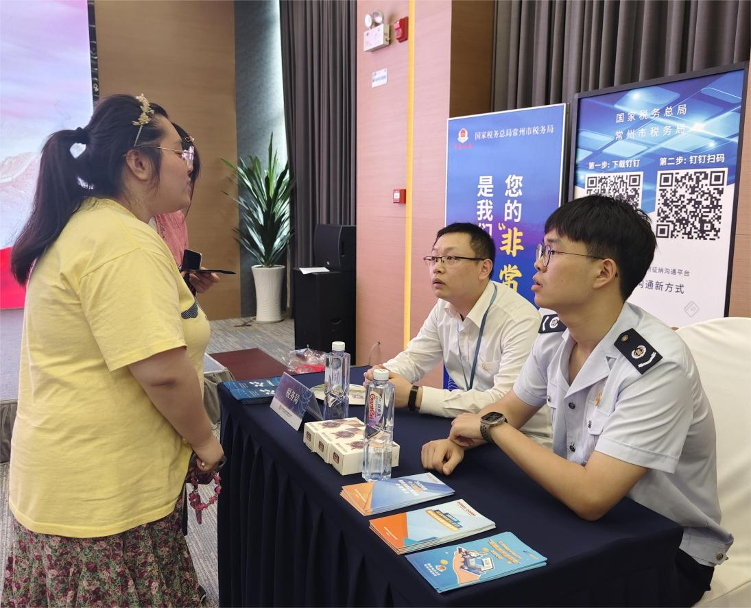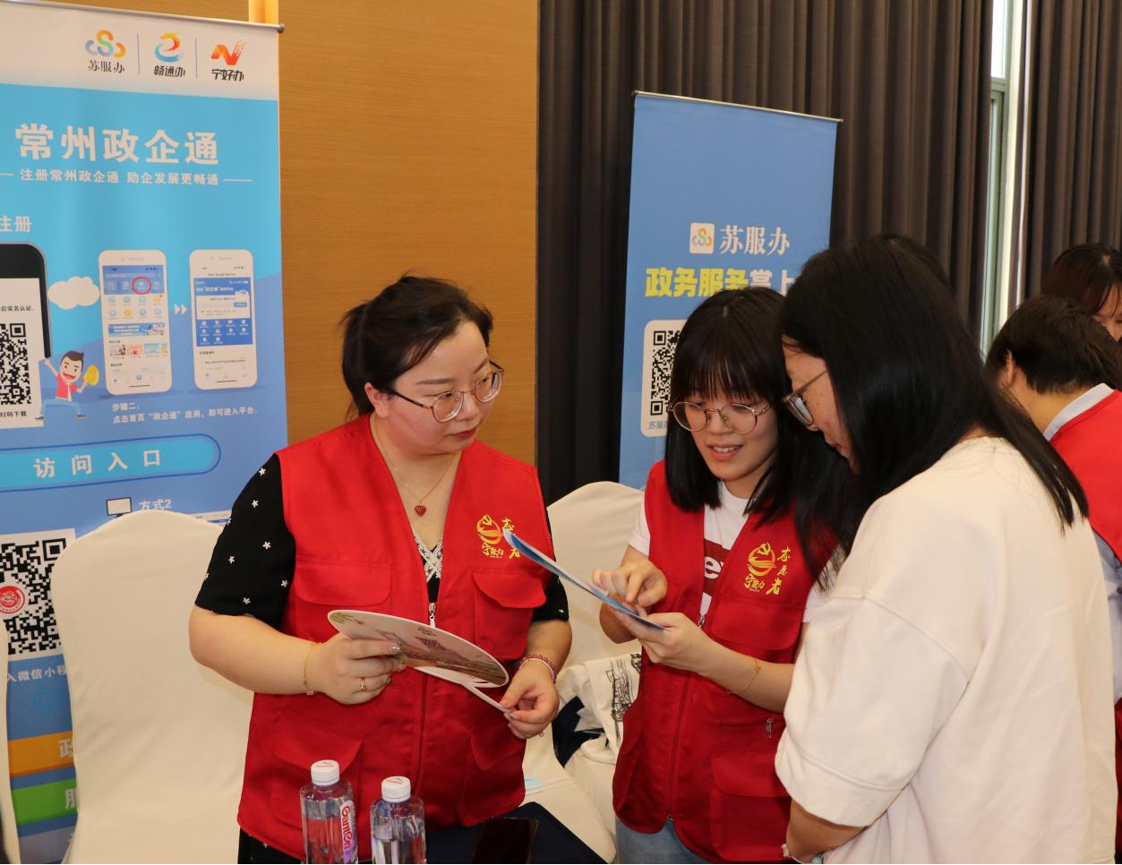 “常州‘政企通’服务平台,一站式整合与企业相关的政策、办事、利企、诉求服务,推动全市惠企政策精准推送、政策兑现直达快享……”志愿者向咨询企业细致讲解相关政策和平台应用。