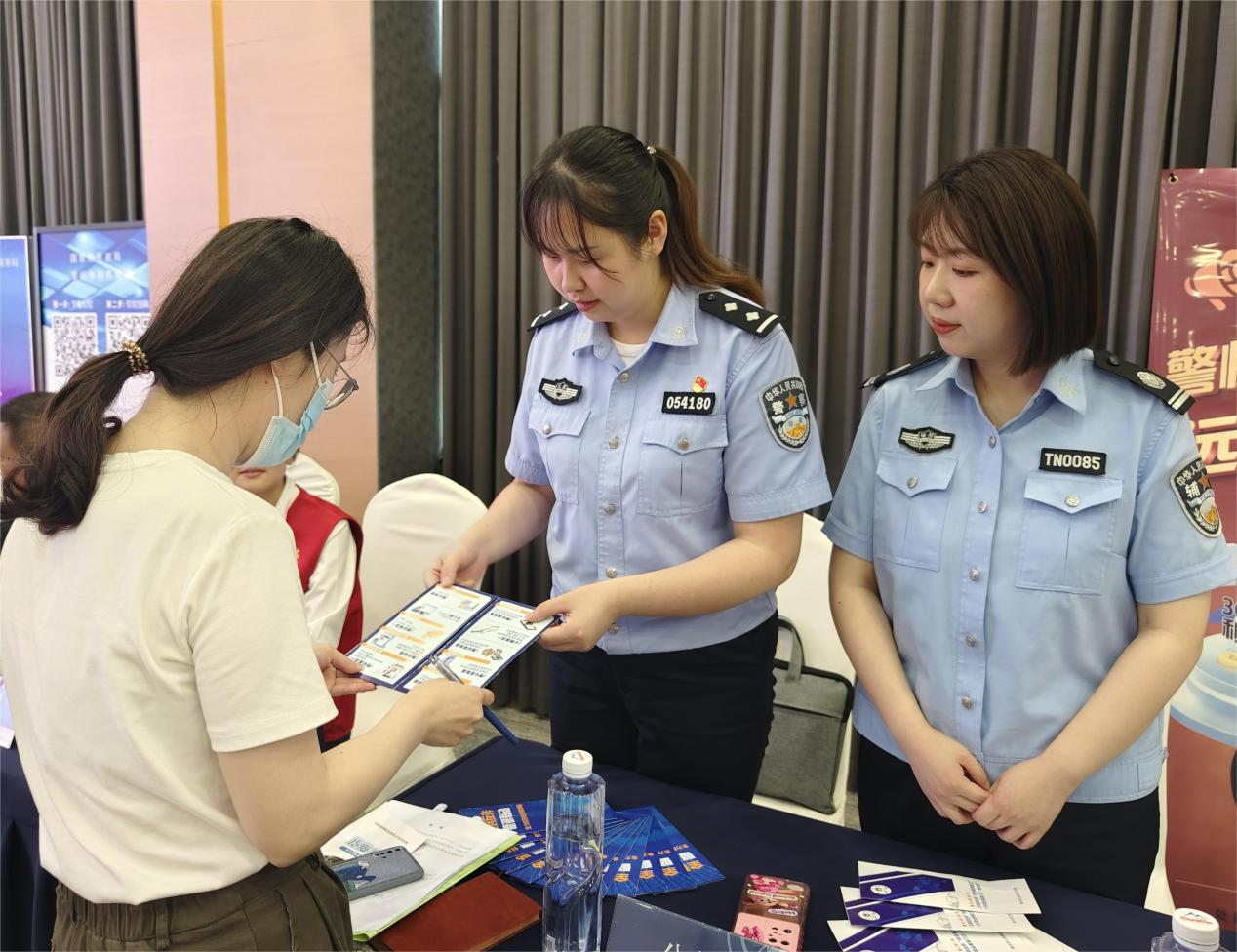 公安天宁分局志愿者向企业群众发放全民反诈宣传手册,呼吁广大群众提高防范意识。