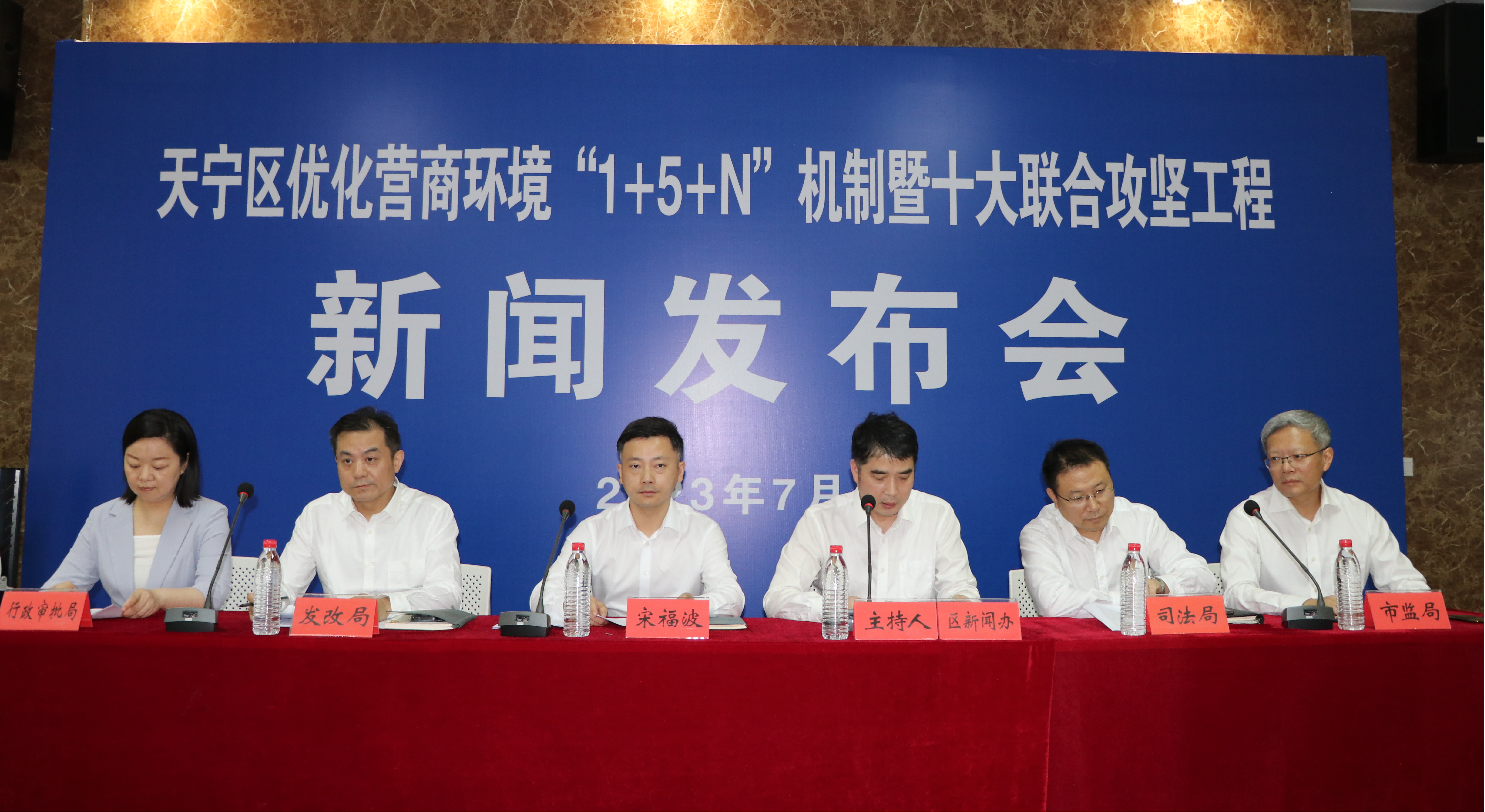 7月12日下午,常州市天宁区举行新闻发布会,介绍优化营商环境“1+5+N”机制暨十大联合攻坚工程。区委副书记、副区长宋福波作新闻发布,区相关部门负责人就有关问题回答记者提问。