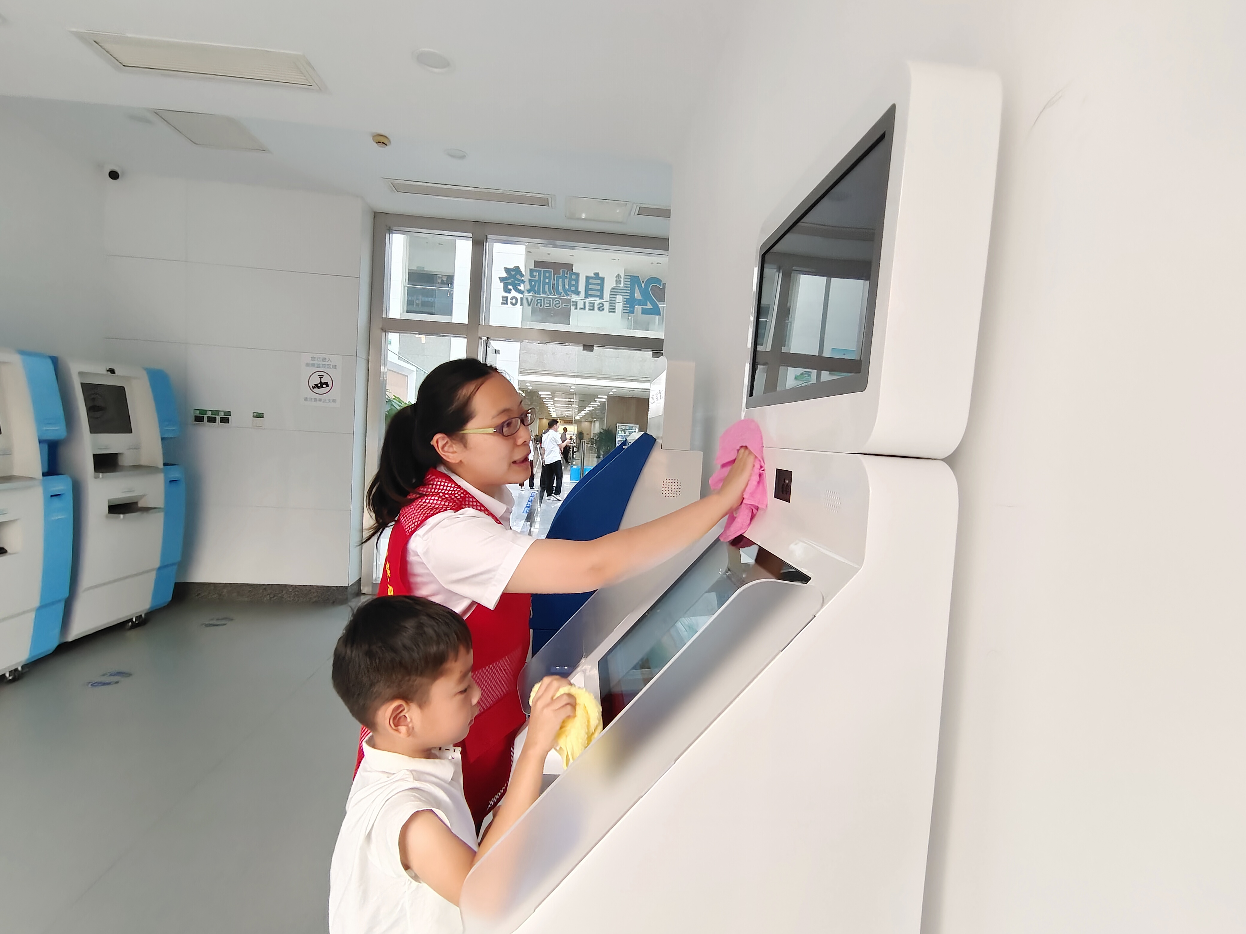 活动当日,恰逢市行政审批局“相约周五”卫生清扫日,活动最后孩子和家长们一起参加政务服务大厅和门前广场卫生清扫活动,共同擦拭政务服务中心玻璃门、服务台、自助机、缘石坡扶手、景观小品等区域,拾捡绿化带杂物烟头,共同营造干净、整洁、优美的企业群众办事环境,让孩子们在力所能及的劳动中悟劳动之美、传承文明之风。
