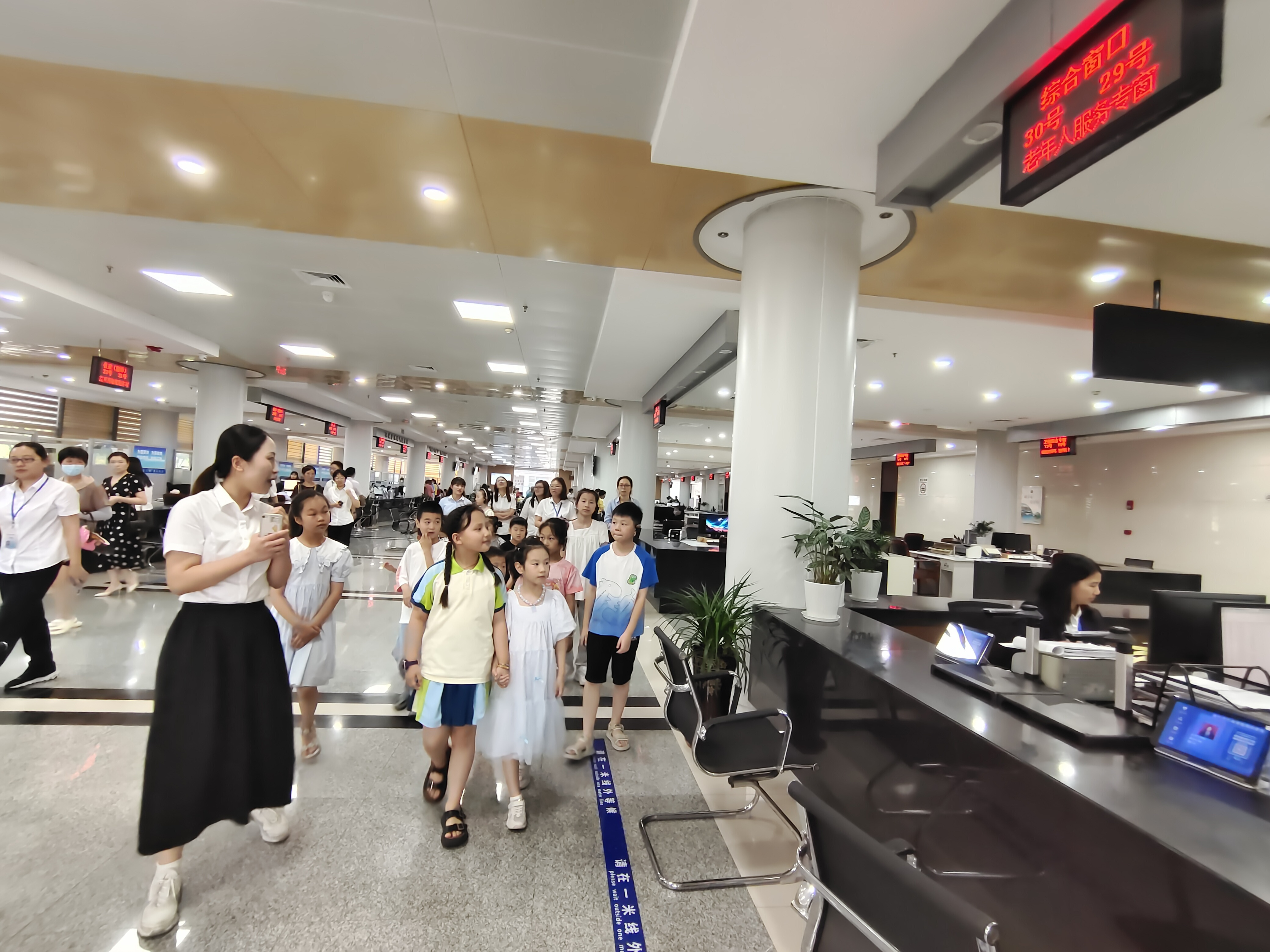 “‘为人民服务’是我们政务服务人的精神内核,政务服务中心共进驻了40个部门110个窗口,企业群众既可以到现场办事,也可以在网上办事,非常方便”跟随着讲解员的脚步,“小小体验官”们先后参观了24小时自助服务区、企业开办免费帮办代办专区、读书角、窗口业务集中办理区、投资建设一站式服务中心等功能区域,详细了解父母工作的场所和内容,切身感受父母争先创优、甘于奉献的职业精神。父母是孩子最好的老师,言传身教是最好的教育方式,“我要成为像妈妈一样优秀的人!”荣誉榜前,看到妈妈的名字在“二季度服务明星”一览赫然在列,徐梓依小朋友自豪而又坚定地表示。