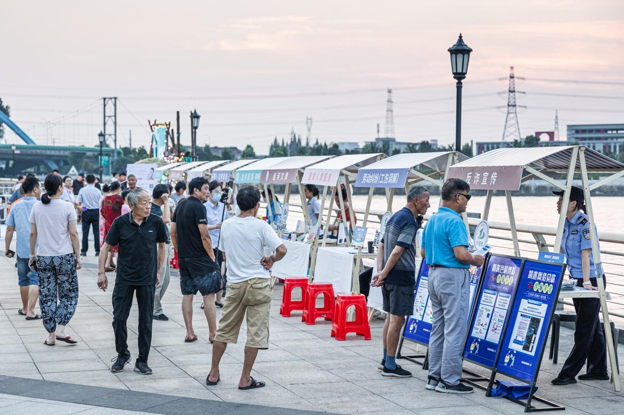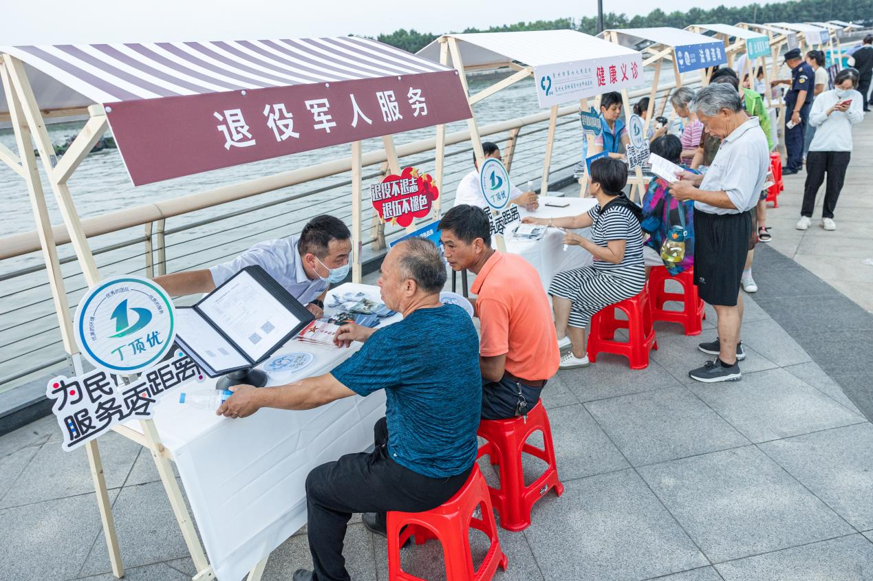 丁堰街道行政审批局组织精干工作人员化身“热情摊主”,在运河公园“摆摊”,设立了多个服务窗口,覆盖了民政、社保、医保、公积金、残联、卫建、司法、公安、文旅等多个领域,同时提供免费问诊、健康咨询,把“固定”政务大厅搬到“集市”,变“坐等上门”为“下沉服务”,让群众在家门口享受优质高效的政务服务。