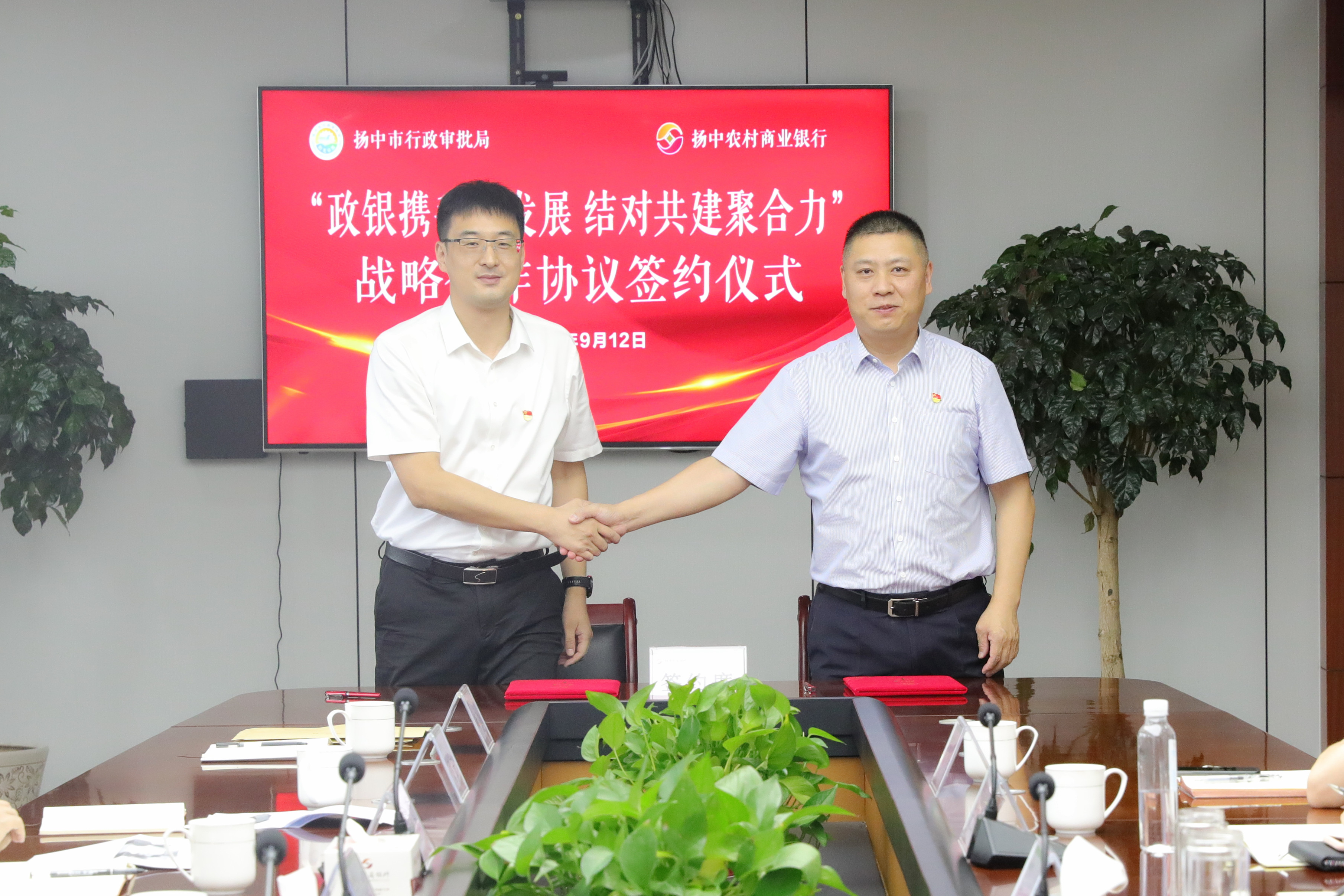 9月12日,扬中市行政审批局与扬中农村商业银行举行“政银携手谋发展 结对共建聚合力”战略合作签约仪式,集聚政银党建联盟合力,推动建立“理论联学、资源联享、队伍联建、工作联推、服务联动、发展联促”“六联”工作格局,助力优化全市营商环境。