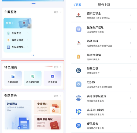登录“苏服办”APP,定位到“南京市”站点,首页下滑至最下方“区县服务”板块,选择“高淳区”即可进入高淳旗舰店。