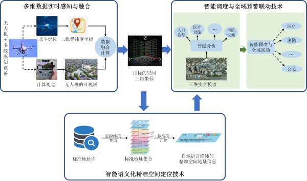 相关负责人告诉记者,智慧城市创新应急管理范式主要技术创新有多维数据实时感知与融合技术、智能语义化精准空间定位技术、智能调度与全域预警联动技术三个方面。