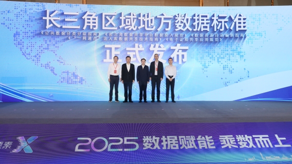 现场还发布了《公共数据分类分级指南》《长三角数据共享平台数据接入规范》《数据资源目录编制指南》《“一网通办”法人库数据共享技术指南》《电子证照共享应用规范》5项区域地方标准,进一步完善长三角数据要素治理标准体系。国家数据发展研究院副院长姜江对《工业制造、现代农业等九个领域“数据要素×”典型场景指引》进行解读。