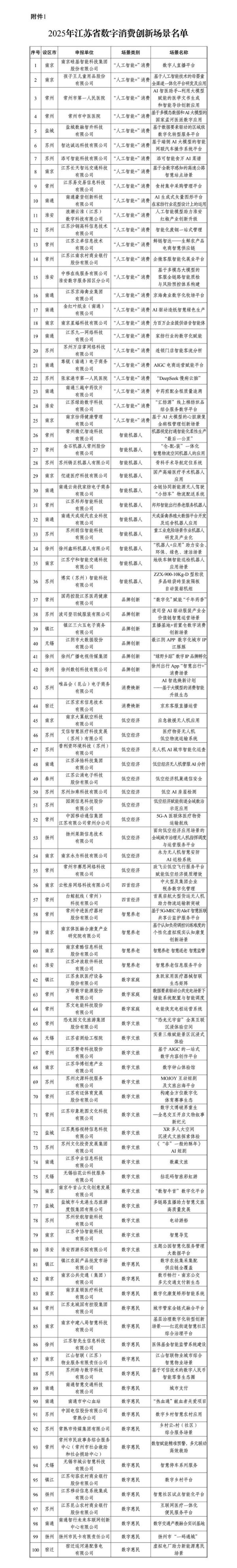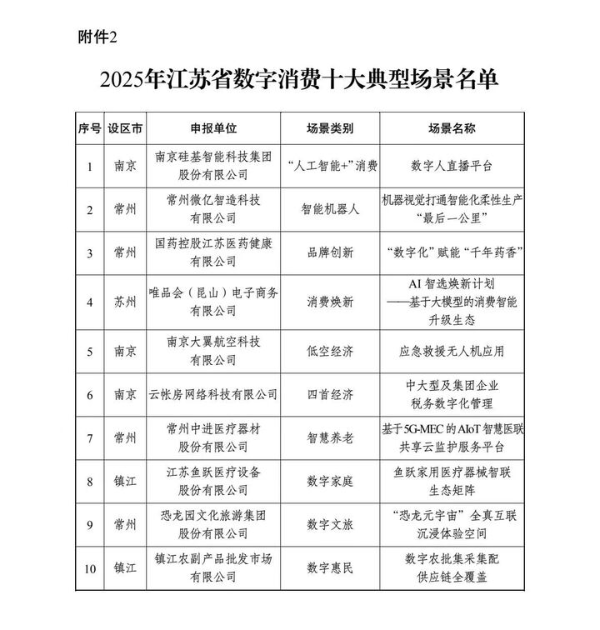 按照我省实施提振消费专项行动工作部署,省数据局联合省发展改革委近期面向全省开展了2025年数字消费创新场景和重点企业培育工作。经地方推荐、合规审查、专家评审、面向社会公示等程序,日前正式确定了100个“江苏省数字消费创新场景”、10个“江苏省数字消费典型场景”、47家“江苏省数字消费重点企业”。