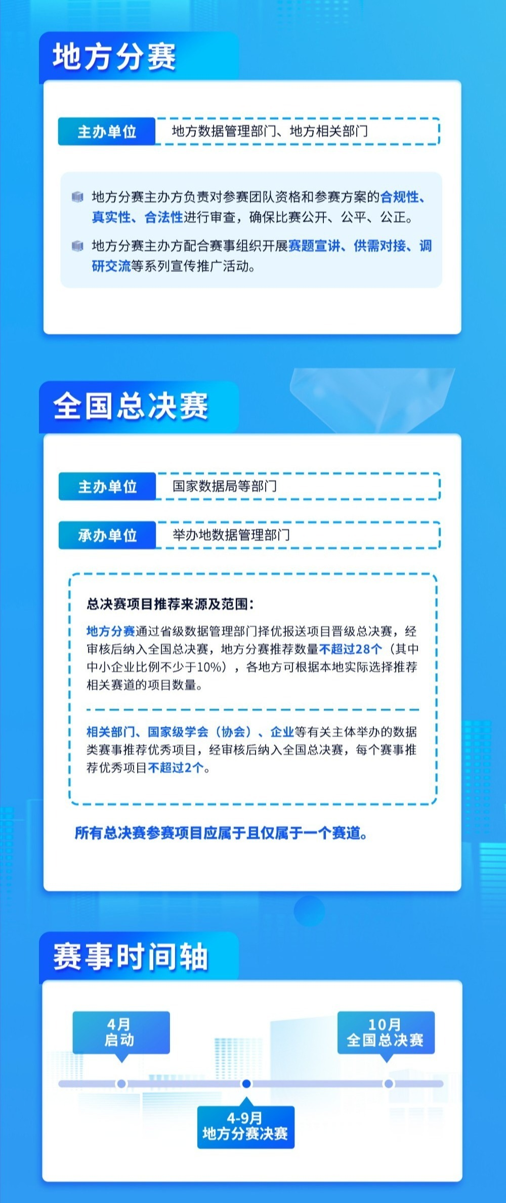 江苏分赛,是在国家数据局、江苏省人民政府指导下,由江苏省数据局等22部门以及南京市人民政府等10个设区市政府主办。赛事设置工业制造、现代农业、商贸流通、交通运输、金融服务、科技创新、文化旅游、医疗健康、医疗保障、应急管理、气象服务、城市治理、绿色低碳、开放性创新赛道共14个赛道。