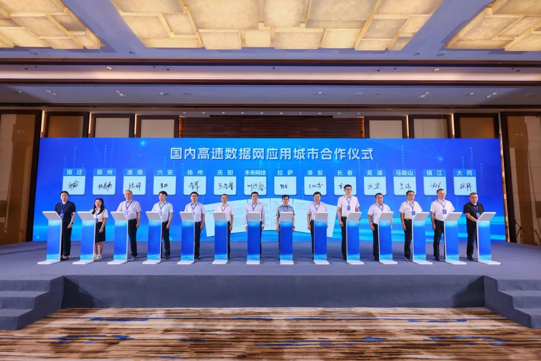 7月23日,由国家数据局数字科技和基础设施建设司指导、江苏省数据局主办、南京市数据局和苏州市数据局承办的“数据基础设施建设交流研讨会”在南京举行。会上,江苏未来网络集团与国内13个合作城市签署了国内高速数据网应用城市合作协议,CENI高速数据网城市级应用推广正式启动。
