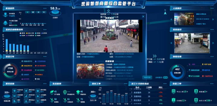 “智慧观前商圈建设以‘数据驱动、场景赋能、生态共建’为核心,构建了智慧观前综合运营监管平台,具备智能感知、数据融合、协同服务、精准运营等四大能力,能够覆盖城市管理、消费服务、安全应急等智慧场景,努力实现商圈‘一图统管、一图全览’。”苏州市观前地区综合管理办公室副主任邵勇介绍。