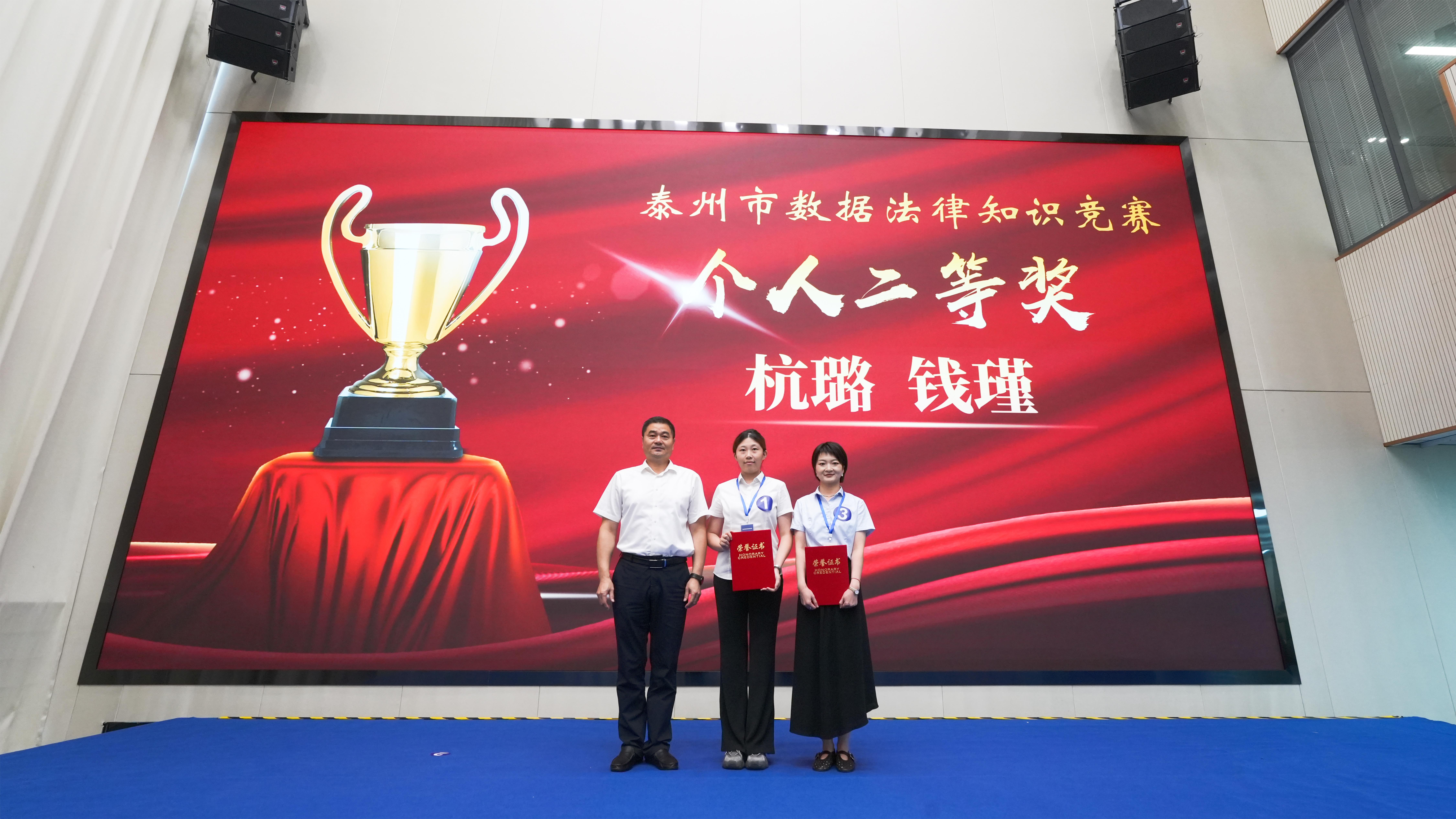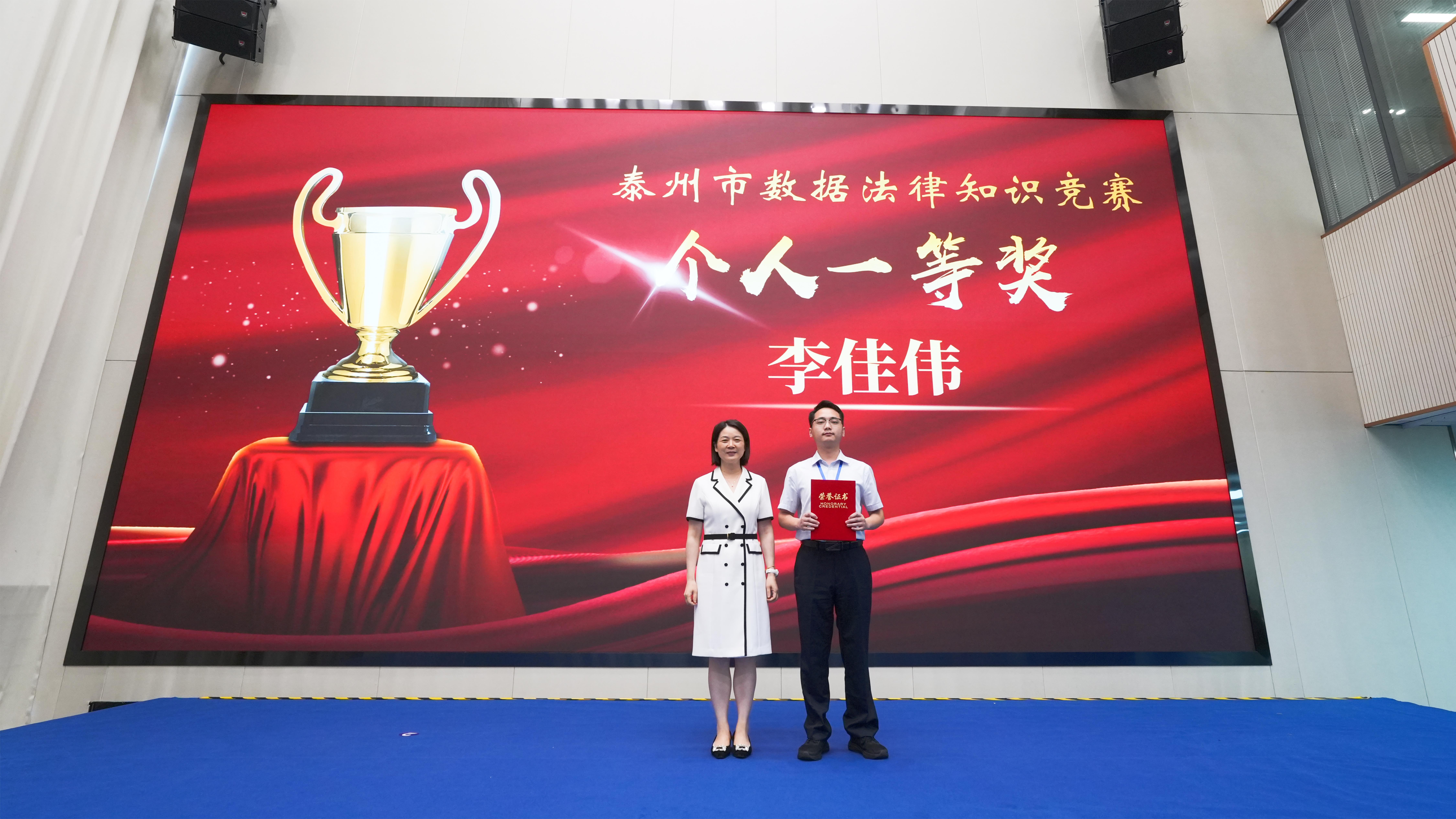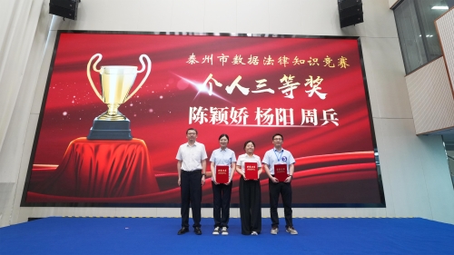 经过近两个小时的激烈角逐,最终,靖江市代表队凭借稳定的发挥和出色的团队协作能力摘得桂冠,荣获团队一等奖;市数据局代表队、海陵区代表队获得团队二等奖;兴化市代表队、市数据产业集团代表队、医药高新(高港)区代表队获得三等奖。本次大赛还特别设置个人奖,旨在表彰在比赛中展现出色个人素养和卓越法律知识的选手,在紧张的比拼中,泰兴市代表队的李佳伟力压群雄,荣获个人一等奖,靖江市代表队的杭璐与泰兴市代表队的钱瑾荣获个人二等奖,姜堰区代表队的陈颖娇、市数据局代表队的杨阳、兴化市代表队的周兵荣获个人三等奖。