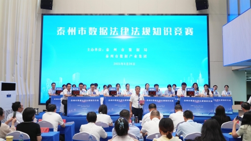 8月26日下午,由泰州市数据局、市数据产业集团联合主办的泰州市数据法律法规知识竞赛在市数据产业集团成功举行。经过前期激烈的选拔,来自市本级及各市区数据局、市数据产业集团的八支优秀代表队脱颖而出,会师比赛现场,展开了一场知识与速度的精彩较量。