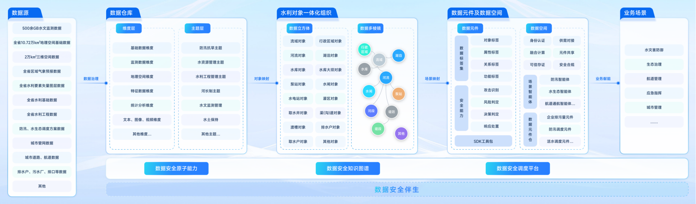 针对水利行业数据孤岛、标准不一、共享不畅等问题,创新打造以数据要素底板为基础,模型、知识平台为核心,以“无/少代码”一体化智能应用搭建环境的智能中枢。支撑水利业务场景实现“历史可重现、现实可演绎、未来可预知”,同时归集水利数字资源统一封装,基于资产化管理为各企事业单位搭建核心技术和产品线上交易平台。