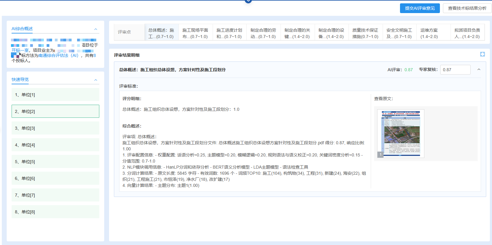 图1 智能评审系统技术标评审结果界面