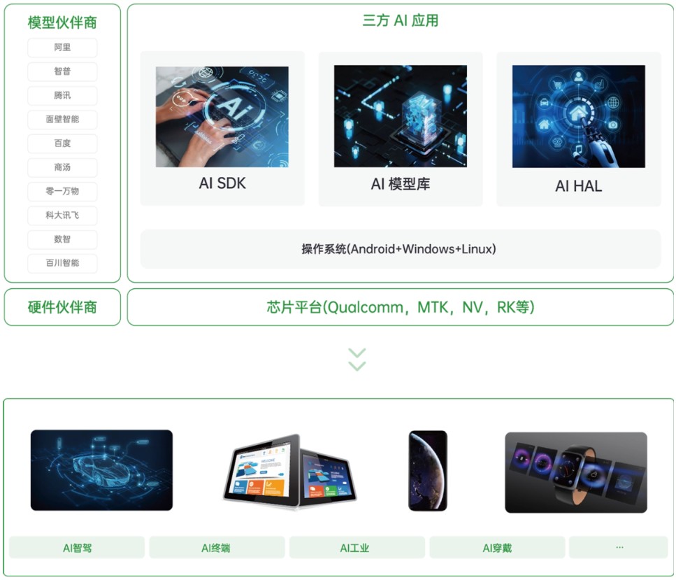 苏州智达诚远科技有限公司不断拓展汽车、手机、智能家居、可穿戴设备等AI应用场景,通过统一数据格式、统一API接口、统一工具链实现跨芯片部署、多芯片融合、多域控融合,构建底层硬件与上层应用的桥梁,为智能终端AI应用软件开发者、下游产业、上游产业提供技术服务、定制开发和商业场景,实现完整产业链生态。