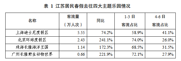 江苏居民前往全国四大主题乐园总人次9.78万,同比增长116.3%。上海迪士尼仍为首选(5.55万人次,占56.7%),春假(4月1日-3日)客流占比近六成;北京环球、广州长隆、珠海长隆春假客流占比均超68%,对比去年客流峰值明显由清明节前移至春假期间。